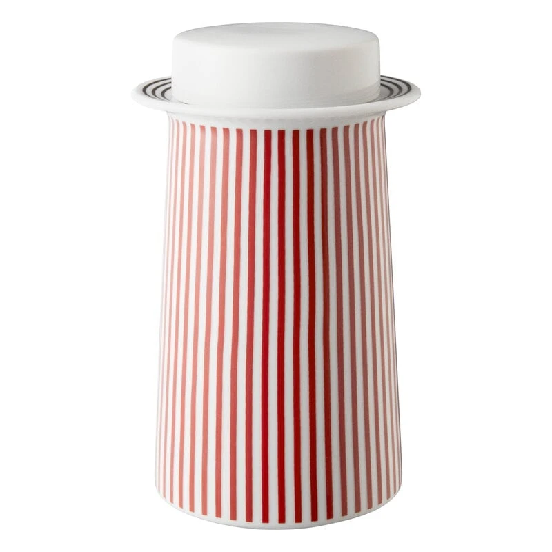 The PC tea jar by 1616 / arita japan is adorned with a lovely red stripe motif as well as two black rings around the opening. The ceramic jar is ideal for storing tea leaves but can be used for sugar, sweets or anything you may think of.