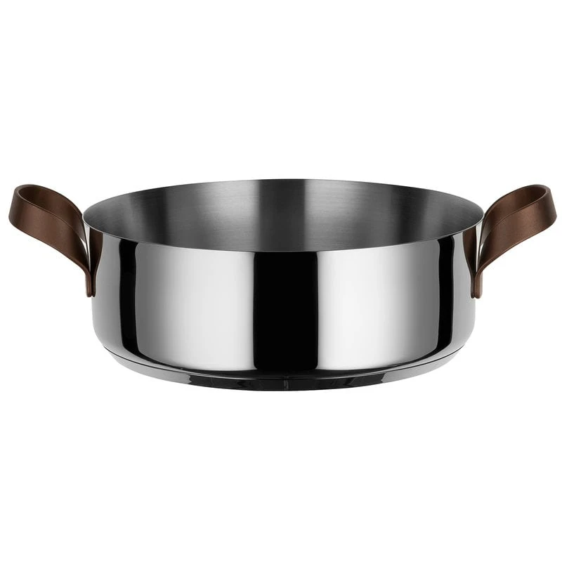 Edo low casserole, designed by Patricia Urquiola for Alessi, is made of stainless steel and finished with distinctive, burnished handles.