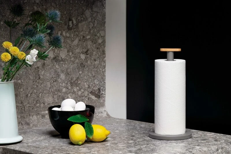 Alessi’s Mattina kitchen roll holder is a fresh and versatile addition to kitchen decor. The kitchen roll holder was created by the Swiss design studio BIG-GAME with a mission to fill everyday routines with indulgence. The sleek and stylish kitchen roll holder is made of steel and finished with an oval-shaped bamboo knob.