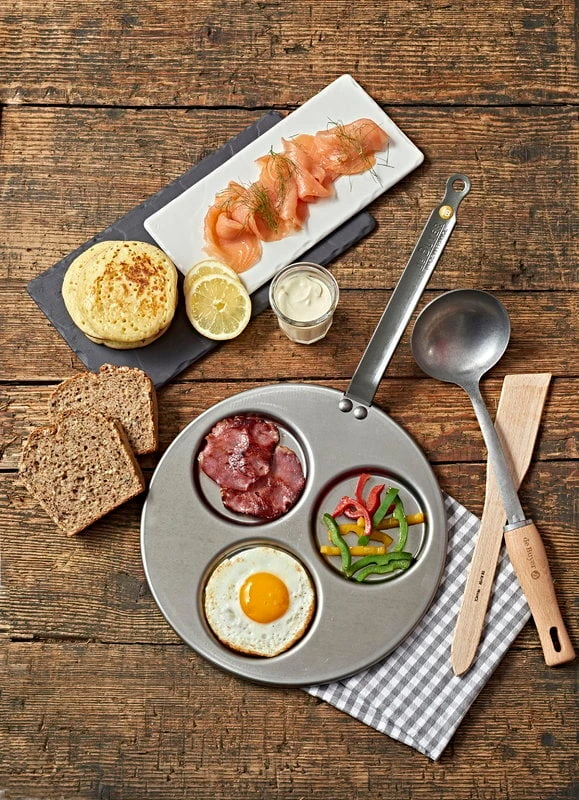 De Buyer’s Brunchtime Box has everything you need for a perfect brunch or breakfast. The set includes the Mineral B carbon steel pan for making pancakes or eggs, a steel ladle with a beech handle, and a spatula made of beech wood. Also included in the gift set is a booklet filled with easy and delicious recipes from well-known French baker and pastry chef Benoît Castel.