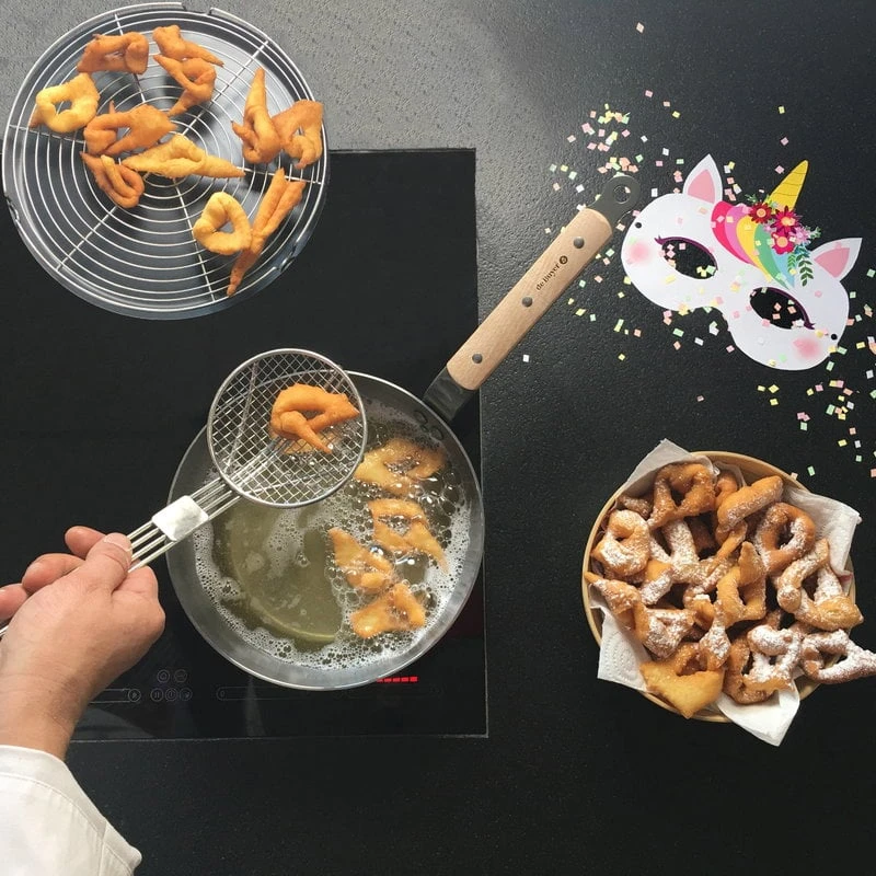 The robust and lightweight carbon steel pans can withstand high temperatures, are excellent for caramelizing food, and stay hot for long. When used regularly, the pan will turn darker and develop a natural non-stick surface – the blacker it gets, the less it sticks. You can also season the pan every now and then. Mineral B Bois pans have been manufactured in France.