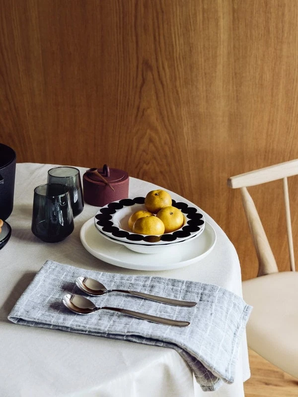 Lastu tea towel, designed by Masaru Suzuki for Lapuan Kankurit, features a geometric square pattern that repeats on the other side with opposite colours. The tea towel is made of high-quality European linen and it has been woven in Finland at the own weaving mill of Lapuan Kankurit.